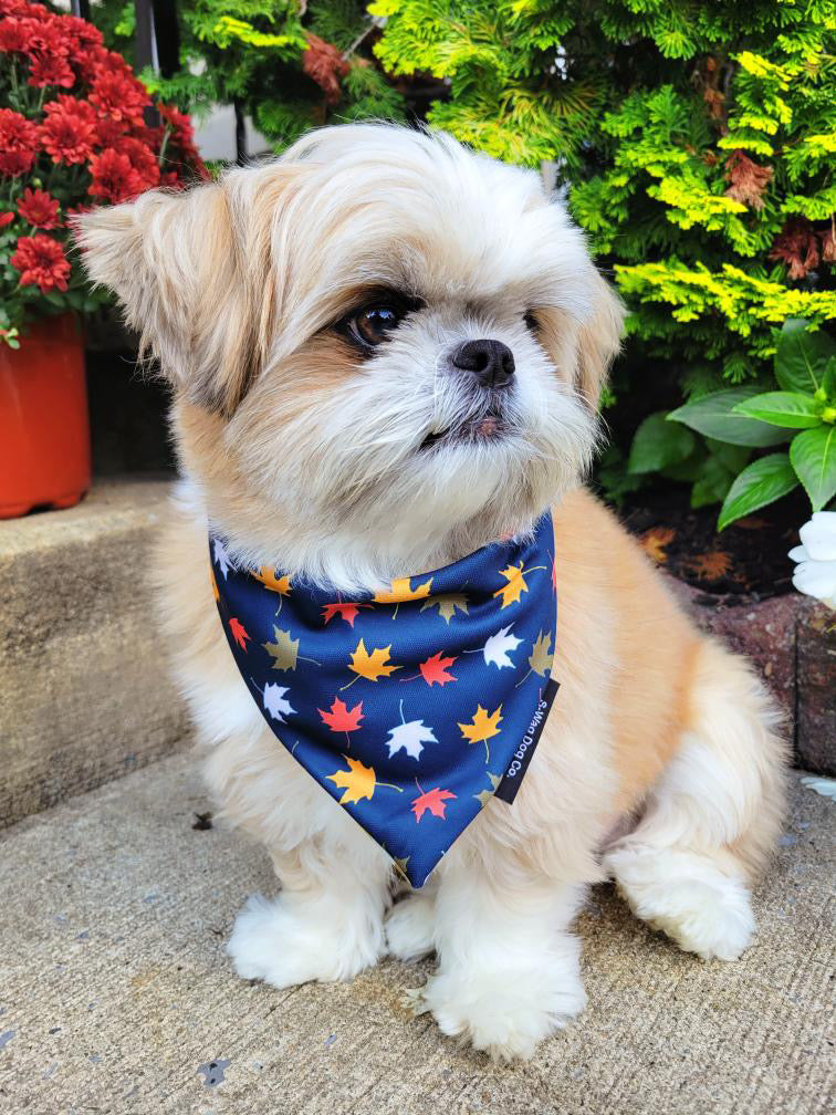 Made with a special Weather-Proof fabric. These can snap on or tie and snap so they stay securely in place. It’s a super flexible and breathable fabric that moves with your dog. It’s also stain proof so no worries about the white getting dirty!