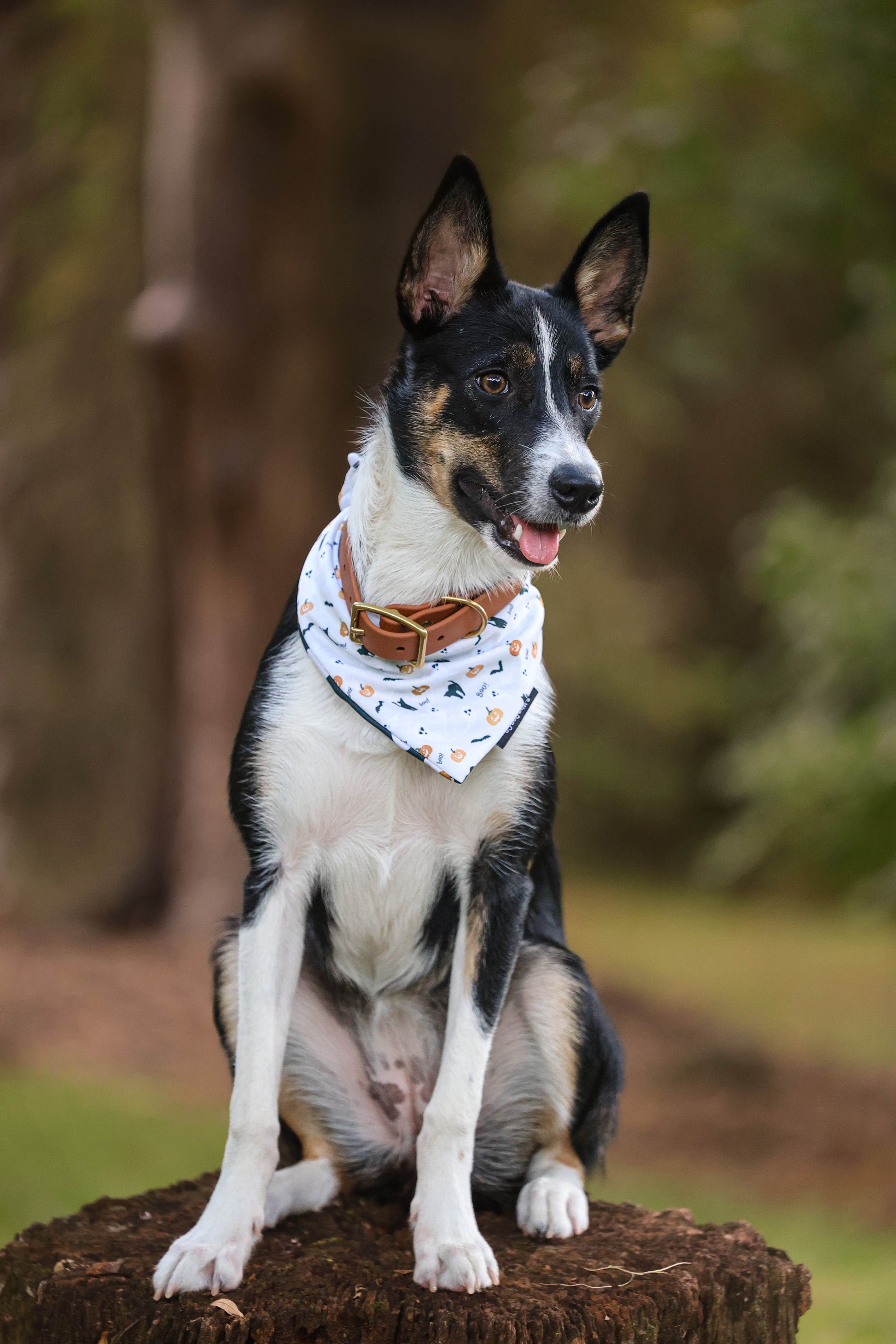 We recommend sizing up when in between sizes or for the extra floof! These can be rolled down for a shorter length if necessary, so it's not super bulky around your pets neck!